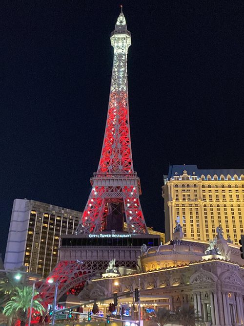 やっと搭乗時間になり飛行機へ。ラスベガスには20時前くらいに到着しました。ホテルに移動してチェックイン。宿泊した「パリス ラスベガス」は、ラスベガスの大通り通称ストリップ添いにあるのでアクセス抜群でした。チェックイン後は、もう夜だし移動で疲れていたので、「ベラージオ」の噴水だけ見に行きました。