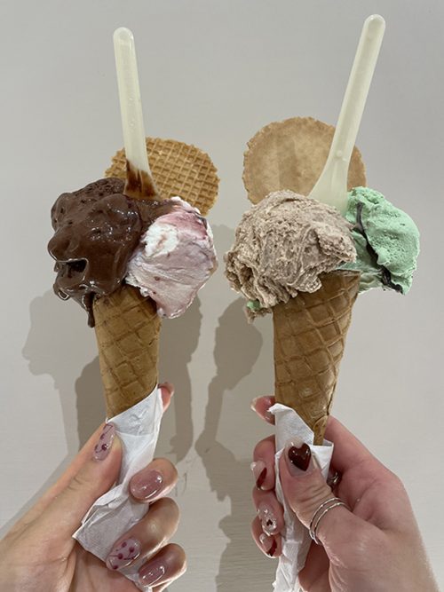 「コロッセオ」に移動して、中には入らず外観だけ見学したり写真を撮ったりしました。次に「トレビの泉」を見に行きました。この辺はジェラート屋さんもたくさんあったので、ジェラートを食べました、可愛いし美味しかったです!