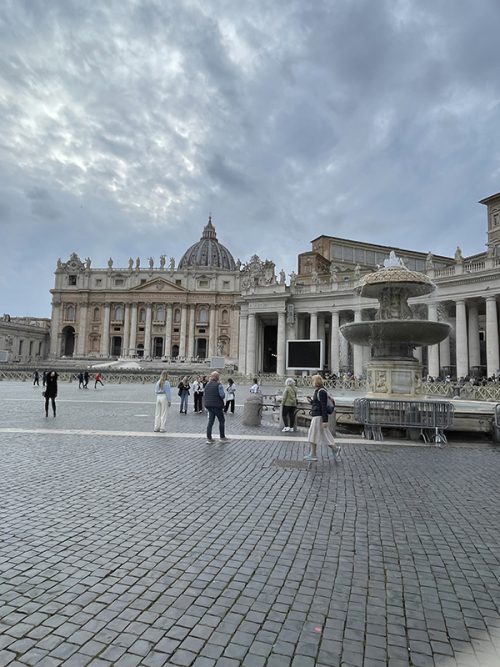 食後は引き続きバチカン市国を観光。「サン・ピエトロ大聖堂」の中に入って見学しました。宗教的に神聖な場所なので服装のチェックが結構きびしいです、とくに女性は事前に調べてから行くことをおすすめします。ここはなんとか入れましたが、後日入れない寺院もありましたので。大聖堂の内部は装飾がとても美しかったです。