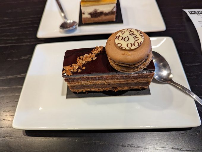 いったんホテルに戻って少し休んでから、スペインの高級パティスリー「bubó BARCELONA(ブボ・バルセロナ)」に向かいました。チョコレートケーキを食べてひと休み。お土産も買いました。日本の表参道にも出店しているパティスリーですが、現地だと安く買えてお得です!