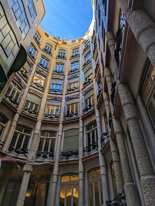 3月12日、この日もまずはガウディ建築を見に「カサ・ミラ」へ行きました。ここも中に入って見学をしましたが、カサ・バトリョほどの驚きはなかったです。内部よりも曲線がきれいな外観のほうが見応えがありました。