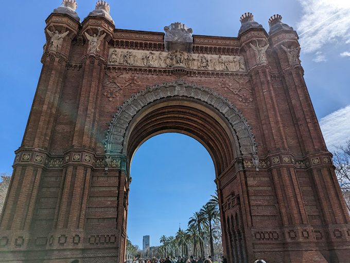 夜にはバルセロナを発つので、最後にお買い物をしようと思っていましたが、日曜日でほとんどのお店が閉まっていて、ちょっと失敗しました。路面店もそうですが、デパートさえお休みなので、まだ行っていない「バルセロナ凱旋門」のほうへ行き、ぶらぶらとお散歩をしました。近くに公園などもあり、天気がよいので気持ちよかったです。