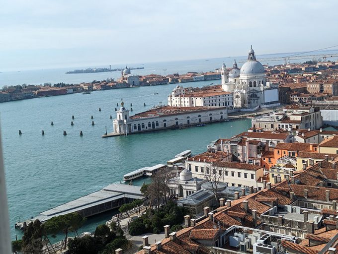 サン・マルコ広場にある「鐘楼」にも登りました。ここはエレベーターがあるので楽ちんです。鐘楼の見晴台からは、ベネチアのパノラマ風景を堪能できます。水の都を一望できる素晴らしい場所でした。とてもきれいに写真が撮れて大満足です。鐘楼は絶対に登るべき!