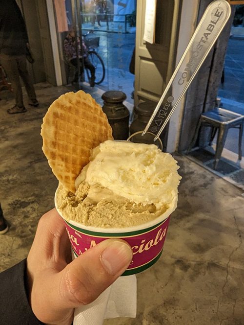 「ヴェッキオ橋」を渡ったりと、フィレンツェの街をお散歩。「La Strega Nocciola」というお店でジェラートを食べたのですが、ここはすごい美味しかった! これぞ期待していた本場のジェラートという味わいでした、おすすめです!