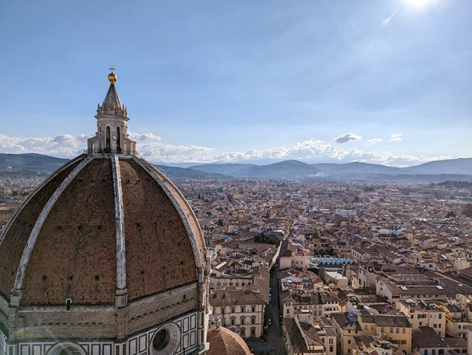 次に「ジョットの鐘楼」へ向かいました。街並みとドゥオーモを近くで見れる写真スポットなので、こちらを登りたいと思っていたのです。階段はかなりきつかったですが、見晴台からの景色はまさに絶景!! 本当に素晴らしい眺望で、ガイドブックの表紙のような写真が撮れました! 1日でドゥオーモとジョットの鐘楼の両方を登るのはきついという情報を見ていたので、ジョットの鐘楼にして大正解。ここからの景色は本当におすすめです!