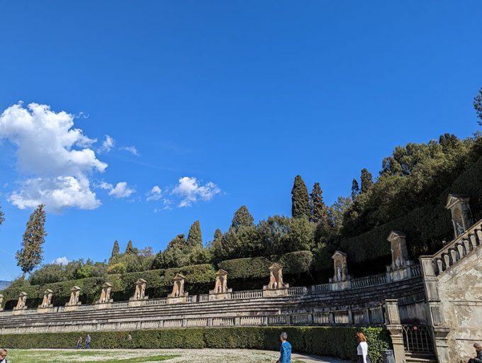 この日もまたジェラートを食べました。前日とは別のお店「Gelateria Della Passera」にて。ここもすごく美味しかったです! その後は「ピッティ宮殿」のほうへ移動。美術の作品が展示されているので見学しましたが、絵画鑑賞はあまり興味がないのでやっぱり疲れました(笑)。そのまま「ボーボリ庭園」へ。天気もよいので景色がすごくきれいで気持ちよかったです。