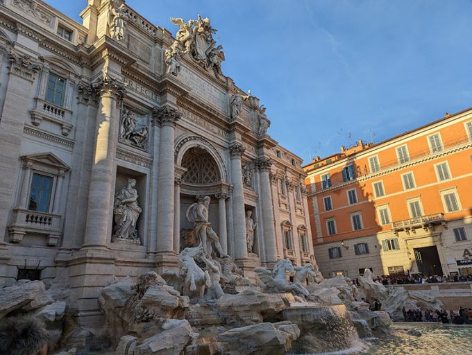 「トレビの泉」は人だかりがすごかった! コインを投げに行きましたが、ぎゅうぎゅうの人混みの隙間から投げてみたかんじです(笑)。そのまま歩いて「クイリナーレ宮殿」へ。さらっと外観だけ見て楽しみ、ホテルに戻りました。