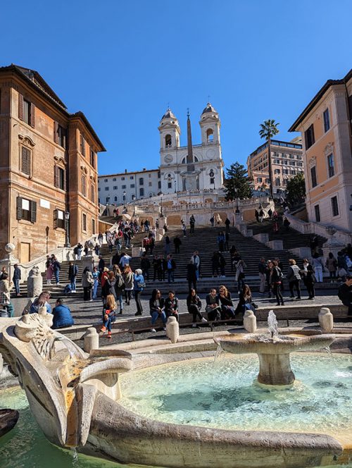 3月18日、電車で「ポポロ広場」へ行き、のんびりお散歩を楽しみました。工事中だったので広告などが出てて若干景観は悪かったです(笑)。そのまま歩いて「スペイン広場」へ。人は多いですがローマらしい景色でした。妻は近くのお店で化粧品を購入していました。イタリアにはオーガニック化粧品がたくさんあるそうで、薬局にも寄ったりして化粧品をたくさん買っていましたよ。