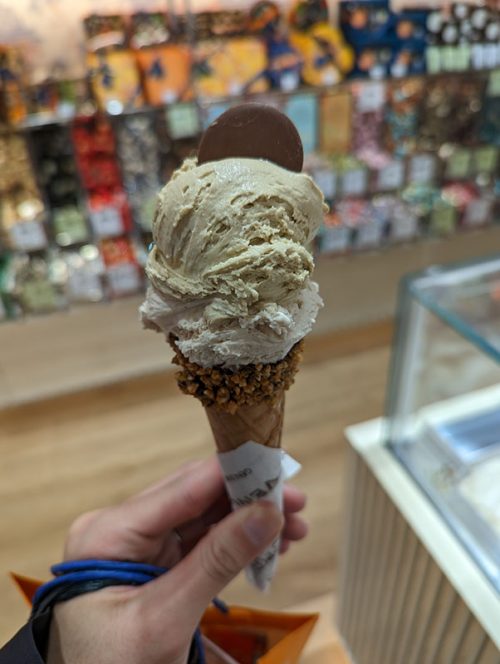 チョコレート専門店「Venchi(ヴェンキ)」でジェラートを食べました。ちょっとお高いですが美味しかったです。お土産用のチョコレートも購入しました。「Pompi(ポンピ)」でティラミスも購入しました。テイクアウトして、後でホテルで食べましたがこちらも美味しかったです。その近くにあった持ち帰りのパスタ店でもテイクアウトしてホテルで食べましたが、安いのにすごい美味しくて驚きました!