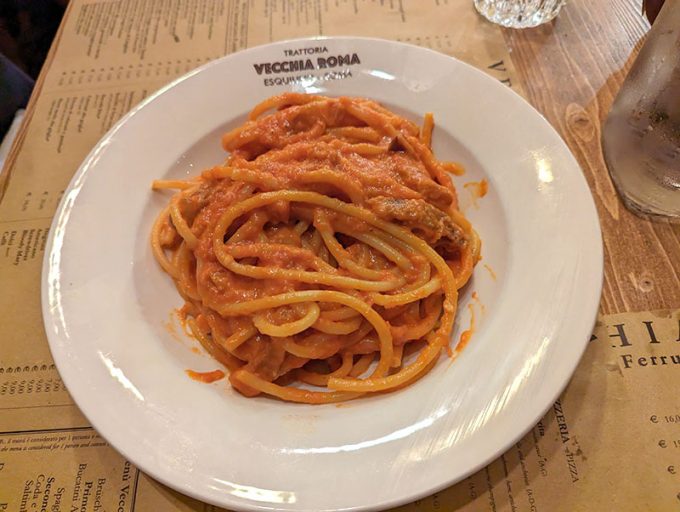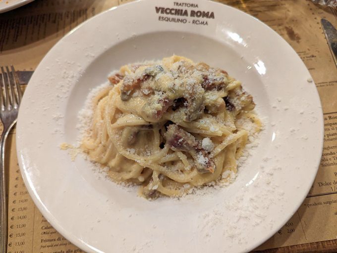 夕飯は、「Trattoria Vecchia Roma(トラットリア ヴェッキア ローマ)」というお店へ。かなりの有名店らしく、すごい並んでいましたが予約していたのですぐに入れました。カルボナーラとアマトリチャーナをいただきました。カルボナーラは塩分がきつすぎて食べるのが大変でした、アマトリチャーナは美味しかったです!