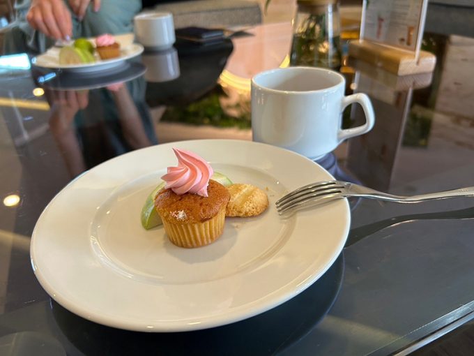 宿泊ホテル「ハイアン ビーチ ホテル & スパ」に到着。まずはチェックインを済ませました。ロビーではアフタヌーンティーサービスを行っていました。毎日14時〜16時までは、ロビーにある軽食やドリンクを自由に飲食できました。そのままアフタヌーンティーで休憩して、スイーツやフルーツなどを食べてからお部屋に向かいました。