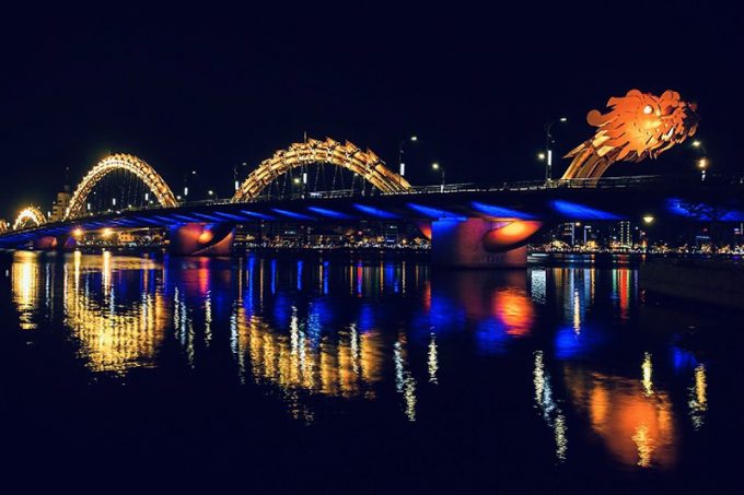 夕食後は歩いて5分くらいの川沿いに移動して、「ロン橋(ドラゴンブリッジ)」のショーを見ました。金曜日・土曜日の21時に、ドラゴンが口から火や水を噴くのです。正直たいしたことなかったですが、まあ週末だし見といてよかったかなというかんじです(笑)。すごく混雑していて暑いし、初日で移動の疲れもあったので、ショーを見た後はタクシーでホテルに戻りました。