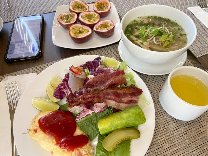 7月4日、旅行最終日。深夜0時過ぎの夜中のフライトなので、昼間観光したら暑いので戻ってきてシャワーを浴びたいと思い、前日にホテルで延泊の交渉をしました。しかし満室とのことなので、急遽ホテル予約サイトで真隣のホテル「セリーヌ ダナン ホテル」を予約しておきました。なので、朝食を食べてチェックアウト後、すぐに隣のホテルへ。ホテルのポーターさんが隣のホテルまで荷物を運んでくれたのでチップを渡しました。