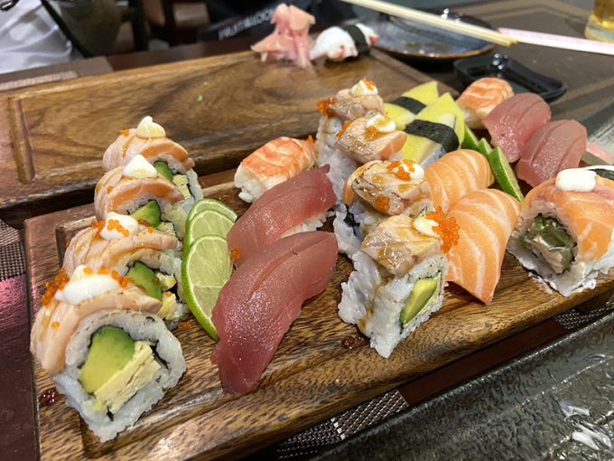 いったんホテルに戻りシャワーを浴びてメイク直しをし、前日に友達になった人たちがおすすめの寿司屋を教えてくれたので、夕食はその寿司屋へ行きました。ハイアンビーチホテルからバイクで5分くらいでした。満という居酒屋で、ベトナムでお寿司って期待していませんでしたが普通に美味しくてびっくり! 日本と変わらない美味しさでした!しかもお寿司を含め色々食べて2杯ずつ飲んで1人1,000円ちょっとというものすごい安さでした!