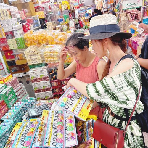 その後、再び「ハン市場」を訪れてお買い物。ダナン大聖堂からハン市場は徒歩だと3分くらいとすごく近いです。今日はTシャツを買いに来ましたがサイズ感が分からず、通りかかった韓国BOYに身体をかりました(笑)。次に、ハン市場からタクシーで5分くらいの場所にある「Go!(元:BIG C)」というデパートへ行きお買い物しました。中にスーパーマーケットがあるのでそこでお土産を購入!