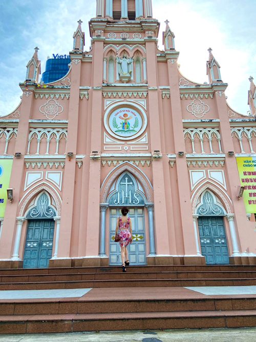 7月3日、ホテルの朝食を食べてから、のんびり準備をしてタクシーで「ダナン大聖堂」へ。この日はゲートが開いていて写真撮影ができました! 入場は無料で、観光客が多いのでうまく入り混み、人が写らないようにうまく撮影しました♪