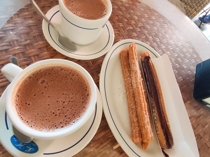 チュロスとホットチョコレート
