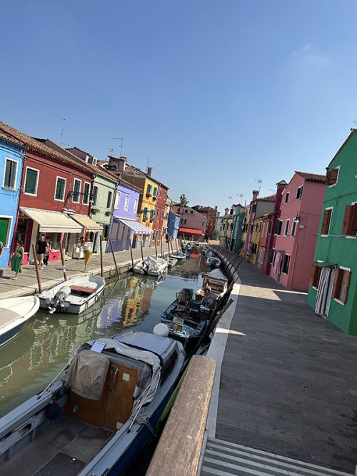 7月17日、ますはホテルの朝食をいただきました。パンの種類が豊富で楽しめましたし、美味しかったです。この日はまず「ブラーノ島」に向かいました。ホテル近くの水上バス乗り場から、1時間くらいかけて到着。島全体がカラフルで可愛らしく、写真をいっぱい撮って街並みを楽しみました。島全体を歩いてぐるっとまわれるほどの小さな島なので、現地に住んでる人の様子を見たり、散策が楽しかったです。お土産に可愛いマグネットを購入しました、ブラーノ島には1時間半くらい滞在していたと思います。
