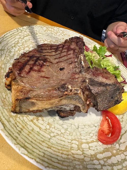 夕食は、主人が予約してくれたレストラン「Trattoria il Contadino」へ。フィレンツェ名物のTボーンステーキとパスタをいただきました。骨付きの牛肉ステーキはとても美味しかったです!