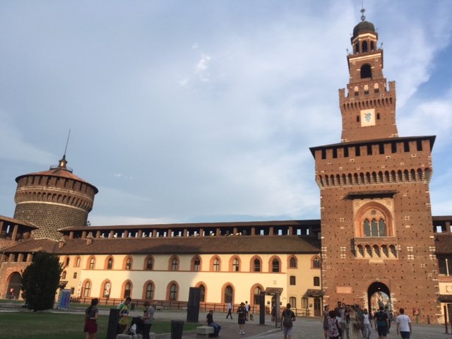 それから再びスフォルツェスコ城へ。お城ではちょうどダンスのイベントをやっており、パソドブレ(スペインの闘牛とフラメンコをイメージしたダンス)の曲が掛かっていたので、社交ダンスを習っている娘は面白そうに見入っていました。夏の夜は他にも色々とイベントがあったようでしたが、娘の語学学校がメインの今回は、そういったイベントに行けなかったのが残念でした。