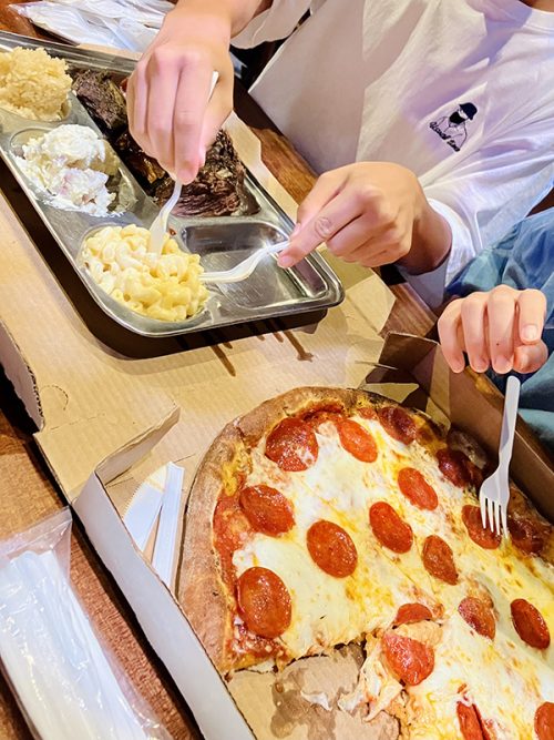 ビーチを巡った後は、「クアロア・リージョナル・パーク」へ。ここでガーリックシュリンプランチなど、家族ぞれぞれプレートランチを注文したのですが、ものすごいボリューム! とても美味しかったのですが、最後のほうは多すぎてお腹が苦しくなりました(笑)。食後は島の北側のノースショアへ向かい「ハレイワタウン」を観光してからワイキキに戻ってきました。