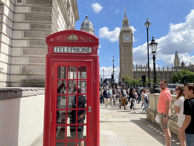 ロンドン到着後は「キングス・クロス駅」に行き、映画『ハリー・ポッター』の“9と4分の3番線”を見に行きました。記念撮影をしたかったのですが、待ち時間が3時間でしたのであきらめました。駅にはお土産屋さんなどもあり完全な観光スポット。その後は列車で移動して「ビッグ・ベン」へ。ロンドンらしい赤い電話ボックスと一緒に撮れる人気の撮影スポットがあり、そこに行きました。映えスポットなので世界中のインスタグラマーが集まっていたような印象でした。1時間くらい待ちましたが、ここは並んで写真を撮りました。