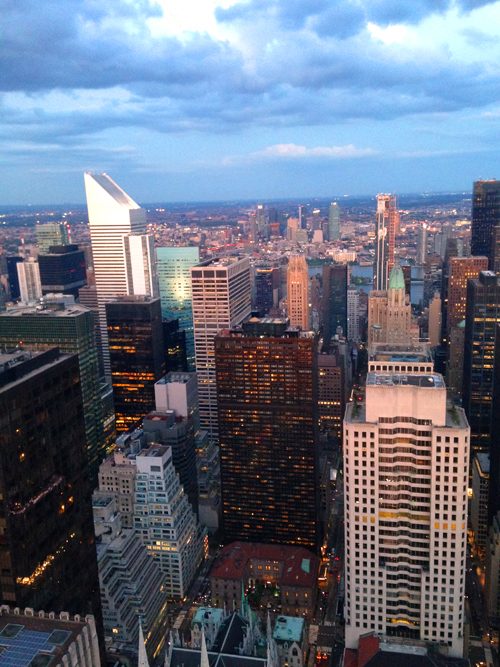 散策を楽しみランチをとった後は、地下鉄に乗ってタイムズスクエアへ。ニューヨークの地下鉄はなかなかわかりづらく苦戦しました(笑)。賑わうタイムズスクエア周辺を観光しながら、夜景の見えるタワー「トップ・オブ・ザ・ロック展望台」を目指します。絶好のビュースポットから、世界の最先端を行くマンハッタンの夕暮れから夜景を堪能でき、大興奮です。輝くマンハッタンの姿はとにかくドラマティックで感動さえ覚えました。