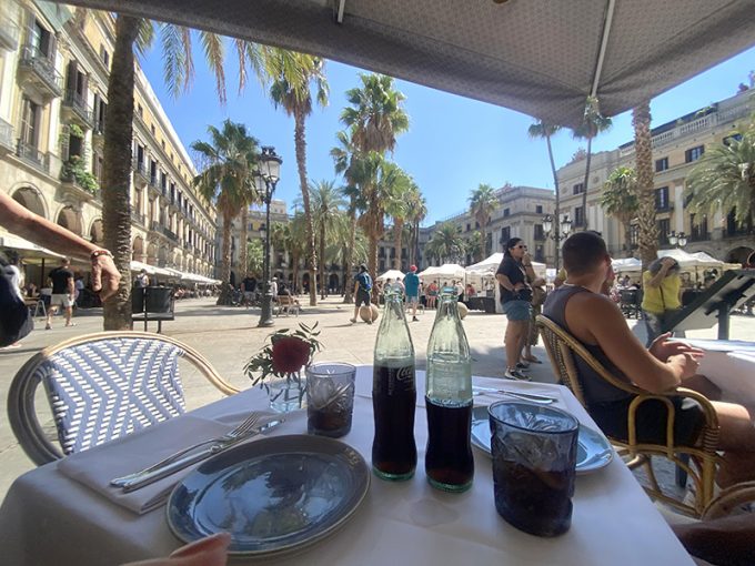 今度は「レイアール広場」まで歩き、イカ墨パエリアのお店「Les Quinze Nits」へ入りました。14時頃でしたが予約なしで入れました。このお店がバルセロナで1番美味しかったです! イカ墨パエリアにニンニク風味のクリームソースをつけて食べたのですが最高でした!