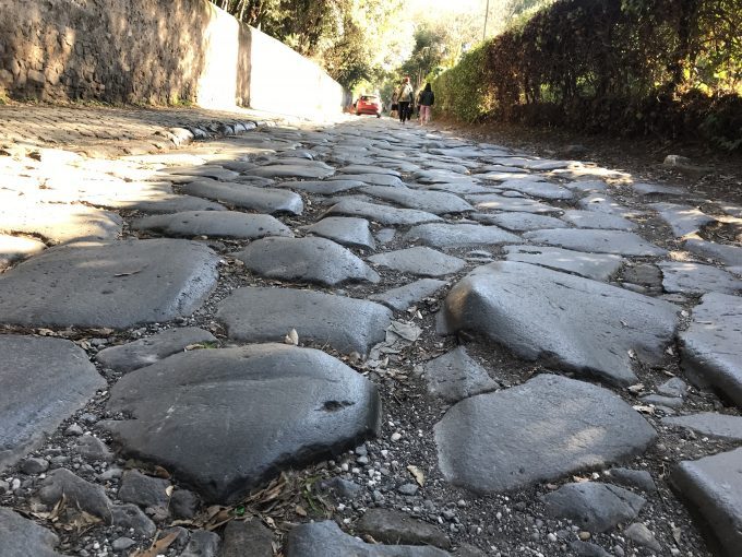 この後「コロッセオ」へ。しかしこの日は入場無料の日だったので長蛇の列。諦めて「カラカラ浴場」へ行くことに。カラカラ浴場は想像以上に巨大で迫力がありました。古代ローマの浴場愛を感じられました。飛行機で『テルマエ・ロマエ』を読んでいたのでしっくりきました。そして「アッピア街道」の石畳を見に行きました。轍が残っているのが歴史を感じて良かったです。