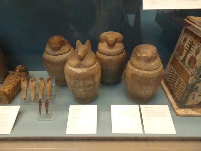 前日短時間では見きれなかった館内全体をじっくり巡りました。エジプトが好きで日本でも関連の展示にはよく出向くので、やはりエジプトの展示が一番楽しめました。特に、ミイラを作る際に取り出した臓器を入れる、マトリョーシカのような形のカノプス壺が好きなんです。猫や鳥など動物の顔がモチーフになっていて、とても希少なものですが、こちらで一挙に見ることができ、とても楽しかったです。