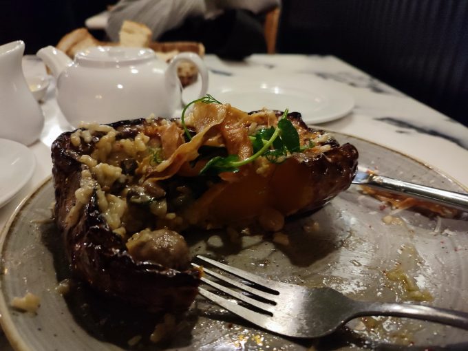 夕食は、ホテルの近くのスペイン料理屋さんNorfolk Armsで。ローステッドバターナッツスクワッシュというお料理を頼んでみました。半分に切って真っ黒になるまでよく焼かれたバターナッツに、マッシュルームリゾットが乗ったお料理です。美味しかったは美味しかったのですが、食べ方がわからず終始困惑(笑)隣の席の常連さんっぽい方に、それ何?と聞かれたので、もしかしたらお店独自の創作メニューだったのかも。食べたことのないものでよくわからなかったですが、いい経験になりました。