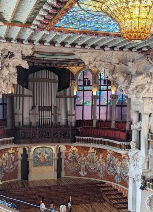 次に「カタルーニャ音楽堂」へ。 素晴らしい空間に感激! ステンドグラスの美しさに感動し、そしてパイプオルガンも素晴らしかったです。本当に美しい音楽堂でした。