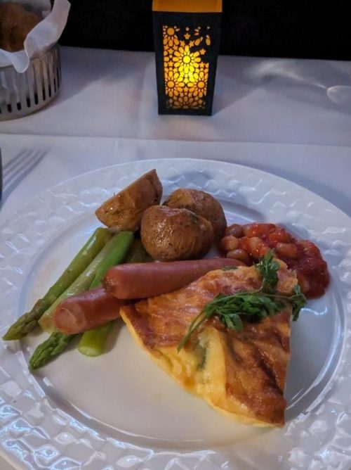 ビジネスクラスの朝食一例