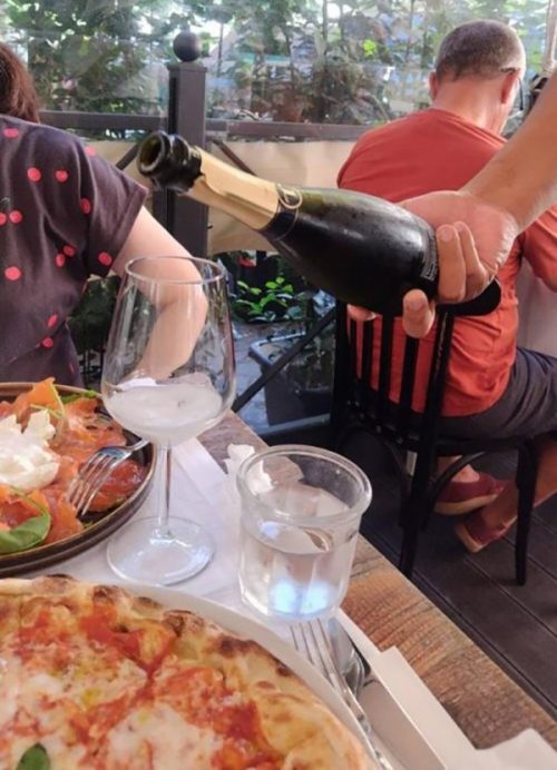 気を取り直して「アイ クレメンティー」というお店でランチ。プロセッコと共に、スモークサーモンとブラータチーズ、マルゲリータピザを美味しくいただきました!ブラータチーズはとっても美味しかったですし、ピザはとても大きいのですが、パリパリサクサクした食感で美味しかったです!