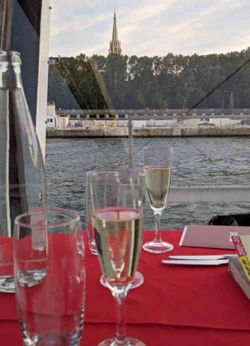 その後、オルセー美術館へ行きましたがあいにく休館日でした。この日の夜は日本から予約していたセーヌ川クルーズへ。船の上でスパークリングワインで乾杯し、素敵なディナータイム。「エッフェル塔」のシャンパンフラッシュも見ることができ、とてもロマンチックで幸せな時間でした。