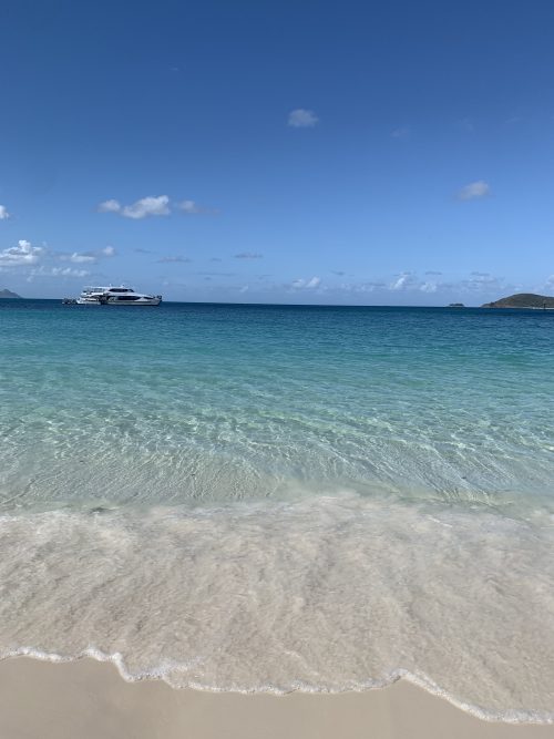 この日は日本で予約していった“世界で一番きれい”と言われている「ホワイトヘブンビーチ」の終日ツターに参加。朝集合して、フェリーで1時間ほど移動して、また違う船に乗り換え、ホワイトヘブンビーチに到着。まずツアーガイドの方と15分くらい歩いて丘に上がり、丘からビーチを眺めたのですが、絶景!こんなに海水が透明なビーチは、生まれてはじめて見るような美しい景色でした。