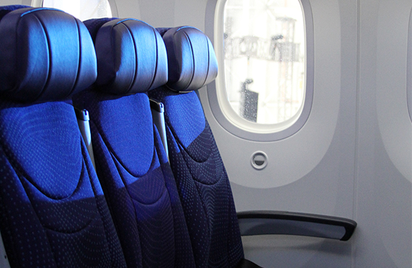 最新鋭機B787ボーイングドリームライナーの開放的な機内空間をご体感ください。