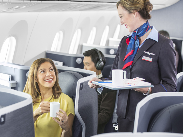 『Bang & Olufsen』社のノイズキャンセリングヘッドホンで無料の映画、テレビ番組、音楽、ゲームを存分にお楽しみください。AC電源、USBポートも完備。また、ほとんどのフライトで映画などをスマートフォン、ノートパソコンでのストリーミングにより視聴も可能です。 Wi-Fi 購入の必要はありませんが、事前にアメリカン航空のアプリのダウンロードが必要です。インターネット用の機内Wi-Fiは有料サービスとなります。