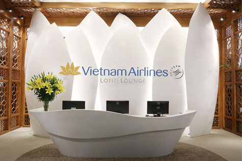 ベトナム航空のロゴマークでもある蓮の花をイメージした「ロータスラウンジ」のエントランス。