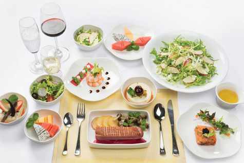 日本路線のビジネスクラスでは、和食、洋食から選択可能です。アペタイザーからデザートまで、長距離路線のようなボリューム満点のメニューは乗客に大好評です。定期的に更新される厳選されたメニューをお楽しみください。