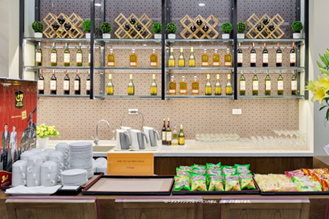 ブッフェ形式のバーでは、軽食やスナック、そしてバラエティ豊富なアルコール類、ソフトドリンクをお楽しみください。