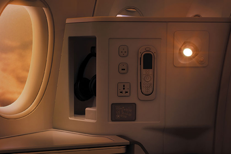 機内で快適にお過ごしいただけますよう、ビジネスクラスの座席まわりは徹底した配慮による使い勝手の良い空間となっています。こだわりのアメニティキットは機内でのリフレッシュにご利用ください。