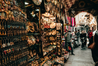 - 路地にひしめくアラビアン雑貨にカラフルなスパイス、活気に溢れるスークは一度は立ち寄りたいスポット。エキゾチックな香水瓶はエジプト土産の定番。