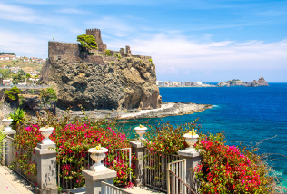 - エトナ山噴火後の火山岩の上にできたとされている、海に突き出た中世の城。海からの姿が素晴らしく、カターニャの街をクルージングで見るツアーが人気。