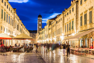 - 旧市街の入口ピレ門から続く、レストランや土産屋が並ぶメインストリート。アドリア海の牡蠣・ムール貝を堪能したり、お買い物をお楽しみください!