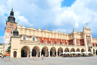 - 中央広場でひと際目を引く壮麗な建造物。2階は「クラクフ国立美術館」、1階は小さなお店がたくさん入った「マーケット」。可愛い雑貨やお土産購入に最適!