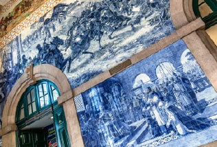 - 外観の美しさもさることながら、ポルトガルの歴史的場面を2万枚ものタイルで描いた駅構内のアズレージョが見事。世界一美しい駅との呼び声高い。