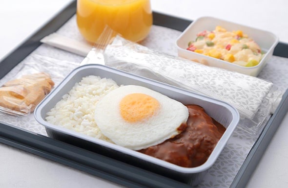 多彩な食事・ドリンクでお客様をお迎えいたします。日本発着便のドリンクは全クラス共通で、トロピカルジュースを含むソフトドリンクはもちろんのこと、全てのアルコール飲料を無料で楽しむことができます。 ビジネスクラスは、和食または創作ハワイアンメニューから選択可能です。ハワイの文化やテイストを取り入れた食事の数々をお楽しみください。サービスとして、ドリンクとマウナ・ロアのマカダミアナッツの提供も。機内にいながらハワイを感じるようなくつろぎの食事タイムをお過ごしください。