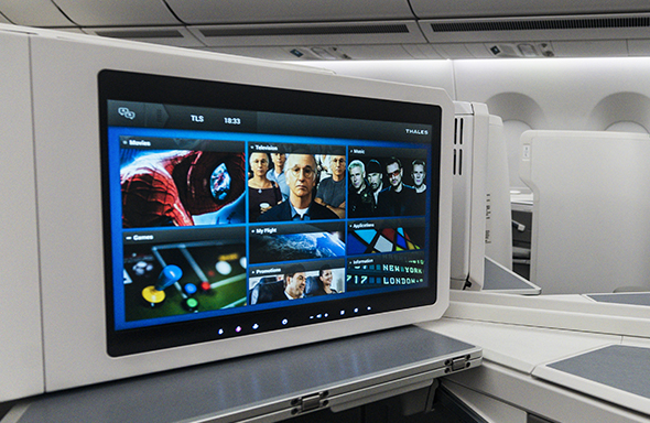 全座席にタッチスクリーン式の個人用モニターを装備しています。日本発着路線に就航しているA350-900型機では、大きめの11.6 インチのスクリーンで映画、ゲーム、音楽、テレビ番組など豊富なエンターテインメントを楽しめます。