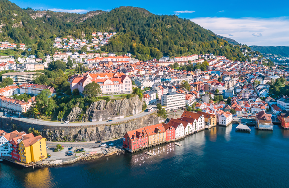 世界で有数の山脈と、美しいフィヨルドを誇るノルウェーの「ベルゲン」。小さな街でありながら、ノルウェー第2の都市として、フィヨルド観光の拠点にもなっています。雄大な山脈と美しいフィヨルド観光をお楽しみください。街歩きも興味深く、ユネスコの世界遺産に登録されている、三角屋根の家屋が建ち並ぶ「ブリッゲン地区」は、まるで童話の中のような景観です。魚市場には多くの露店が並び、地元の買い物客や観光客で賑わいます。新鮮なシーフードのほか、北欧土産のショッピングも楽しめます。